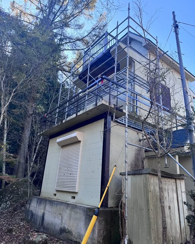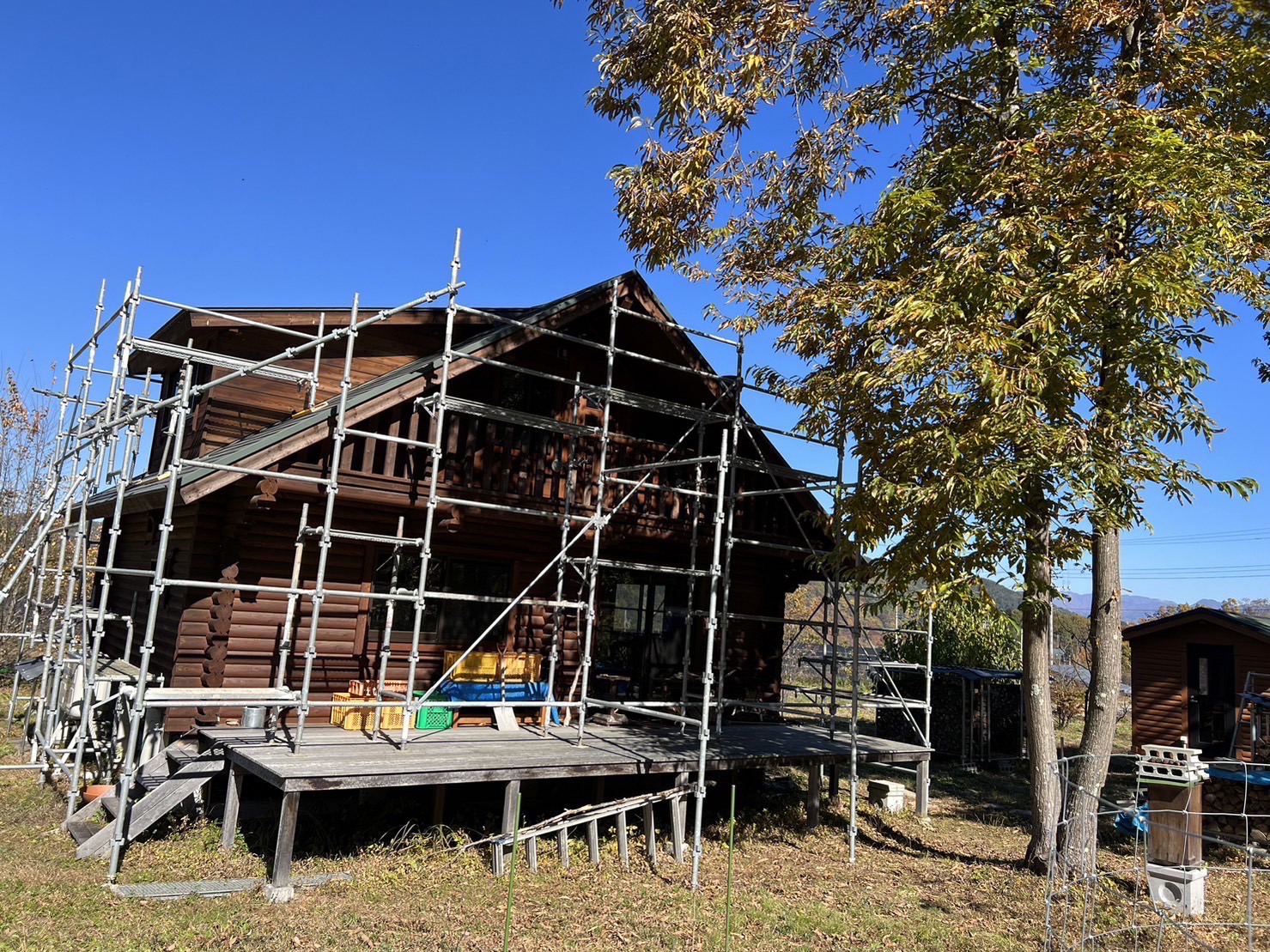 山梨県北杜市にてログハウスの塗装足場を施…